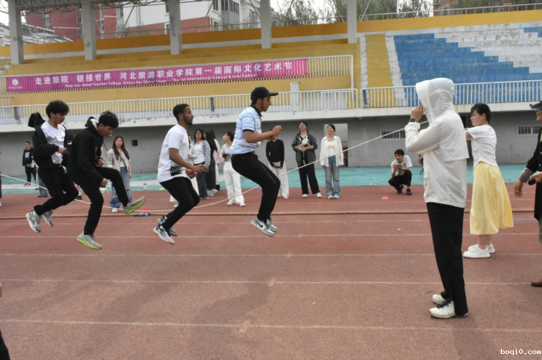 在轻松愉悦的氛围中,师生们共同参与了拔河、跳绳等破冰互动游戏。现场气氛热烈,中外学生之间的互动交流进一步拉近了彼此的距离。活动最后,师生们在操场上合影留念,记录下了这一珍贵的跨文化交流瞬间。